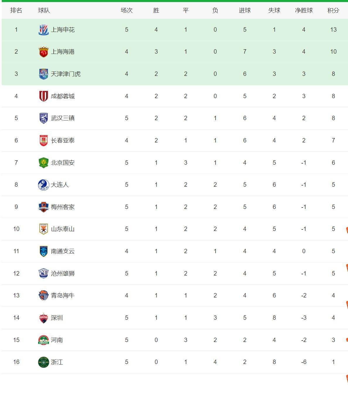 中超积分榜