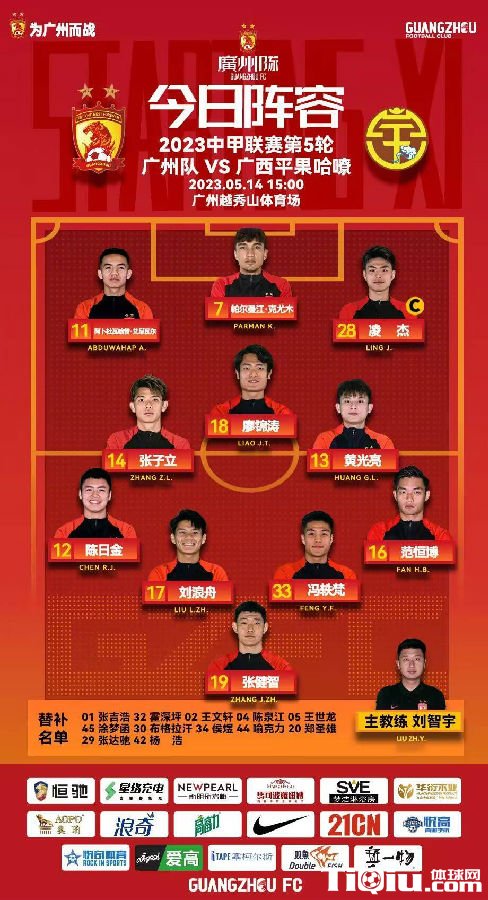 国内足球 时间:2023-05-14 19:10来源:编辑:燕归今天是母亲节,在今天,2023年中甲联赛新赛季将进行第五轮比赛,在今天下午北京时间今天15:30,广州队vs广西平果哈嘹,目前双方已公布首发。从首发的情况来看,曾经广州队的赵旭日、邹正将代表广西平果哈嘹对战广州队,也在首发的名单当中,势必会有好看点出现。