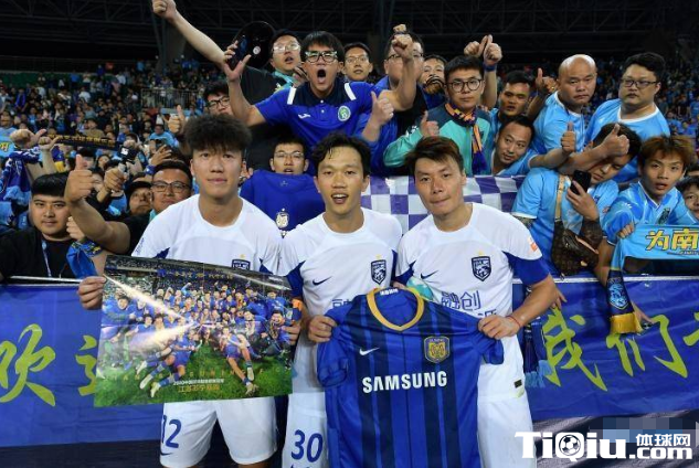 不过赛后三名武汉三镇球员谢鹏飞、罗竞、张晓彬赛后来到主队球迷看台,向南通支云球迷致谢。他们拿着江苏苏宁队的球衣和苏宁队的一张夺冠海报,与江苏球迷合影留念。