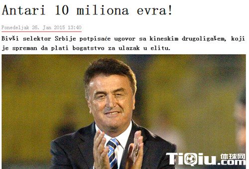 国内足球 时间:2015-01-27 15:57来源:未知编辑:浅月【导读】当地时间1月26日,据塞尔维亚媒体进一步报道,前鲁能主帅安蒂奇收到了来自中国某中甲球队提供的一份为期三年、总薪水近1000万欧元的大合同。