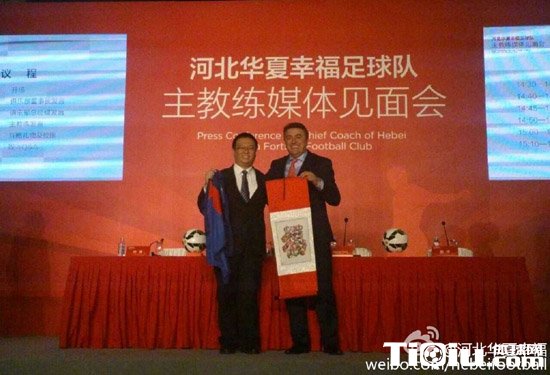 国内足球 时间:2015-01-27 14:30来源:未知编辑:浅月【导读】北京时间1月27日消息,中甲球队河北华夏幸福召开新闻发布会,正式宣布他们正式收购了中甲河北中基队,曾执教皇马、巴萨以及鲁能等队的塞尔维亚名帅安蒂奇正式上任,签约三年。