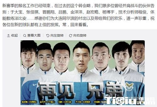 国内足球 时间:2015-03-03 10:39来源:体球网编辑:浅月【导读】昨天下午,大连阿尔滨俱乐部官方微博发布消息,感谢了过去为球队效力过的球员们,并希望他们以后还能常回来看看。
